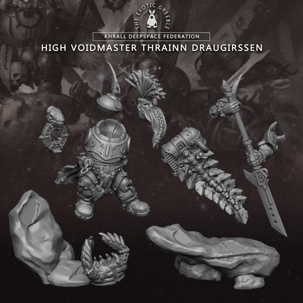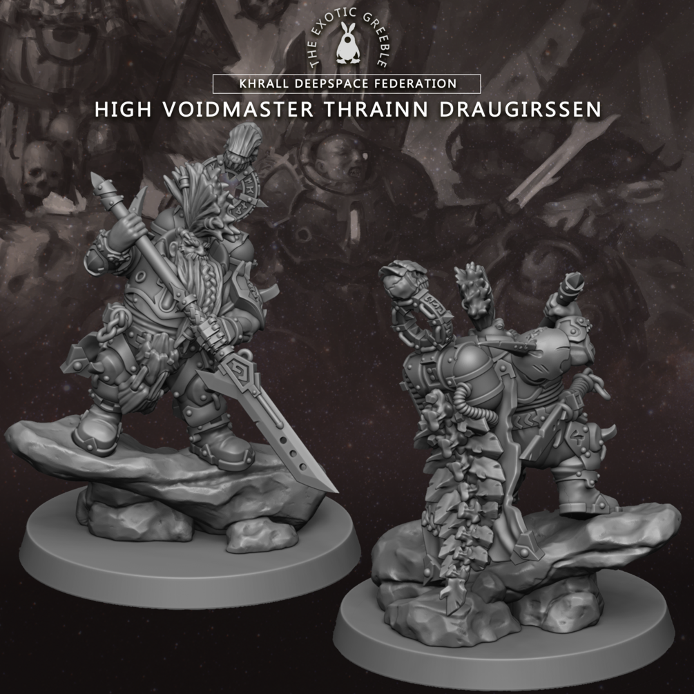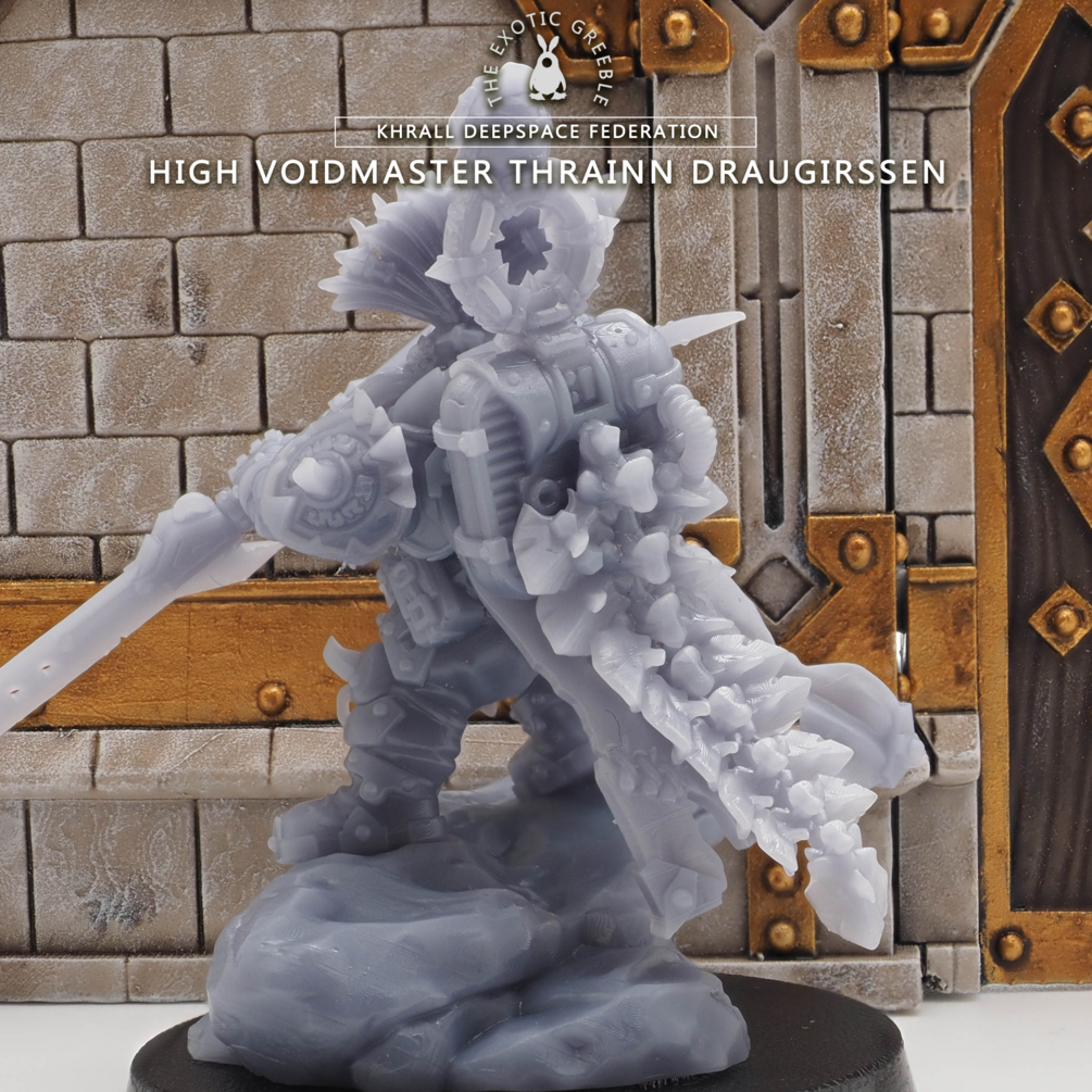 Thrainn Draugirssen hurls himself into the foe with the savage certainty of a warrior long resigned to death’s embrace. Each ruthless arc of his void-forged Silmarum glaive, hews flesh and steel alike, leaving only ruin in his wake. No abomination, no colossus of the alien breed, can elude the far-reaching retribution of his wrath