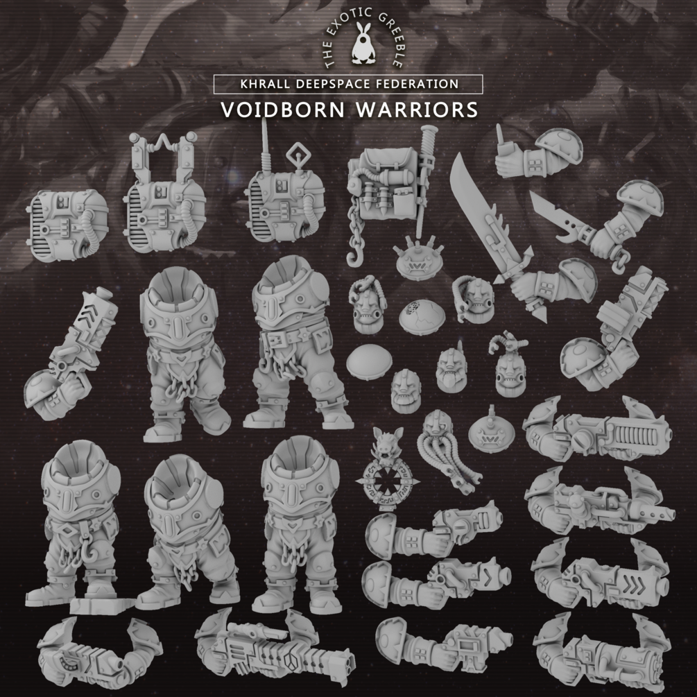 A mainstay of any Khrall Deepspace Federation expeditionary force, Voidborn Warriors are created to explore and exploit the darkest parts of deep space.